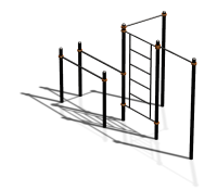 Представленный проект спортивного комплекса устанавливается на улице для выполнения тренировок воркаут и обычных упражнений. Спортивный комплекс является сборно-разборной конструкцией, его доставляют на объект отдельными элементами и выполняют установку. Все части конструкции выполнены из металла, покрыты антикоррозийным слоем и порошковой краской.