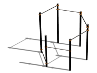 Конструкция для выполнения различных упражнений из комплекса воркаут, а также для проведения базовых тренировок для общего физического развития. Спортивный комплекс состоит из разноуровневых турников и упоров для отжиманий. Все элементы изготовлены из прочного металла, который покрыт защитным слоем от коррозии и порошковой краской. Это сборно-разборный тип конструкции, который после доставки отдельными элементами собирается на объекте с использованием болтов и гаек.